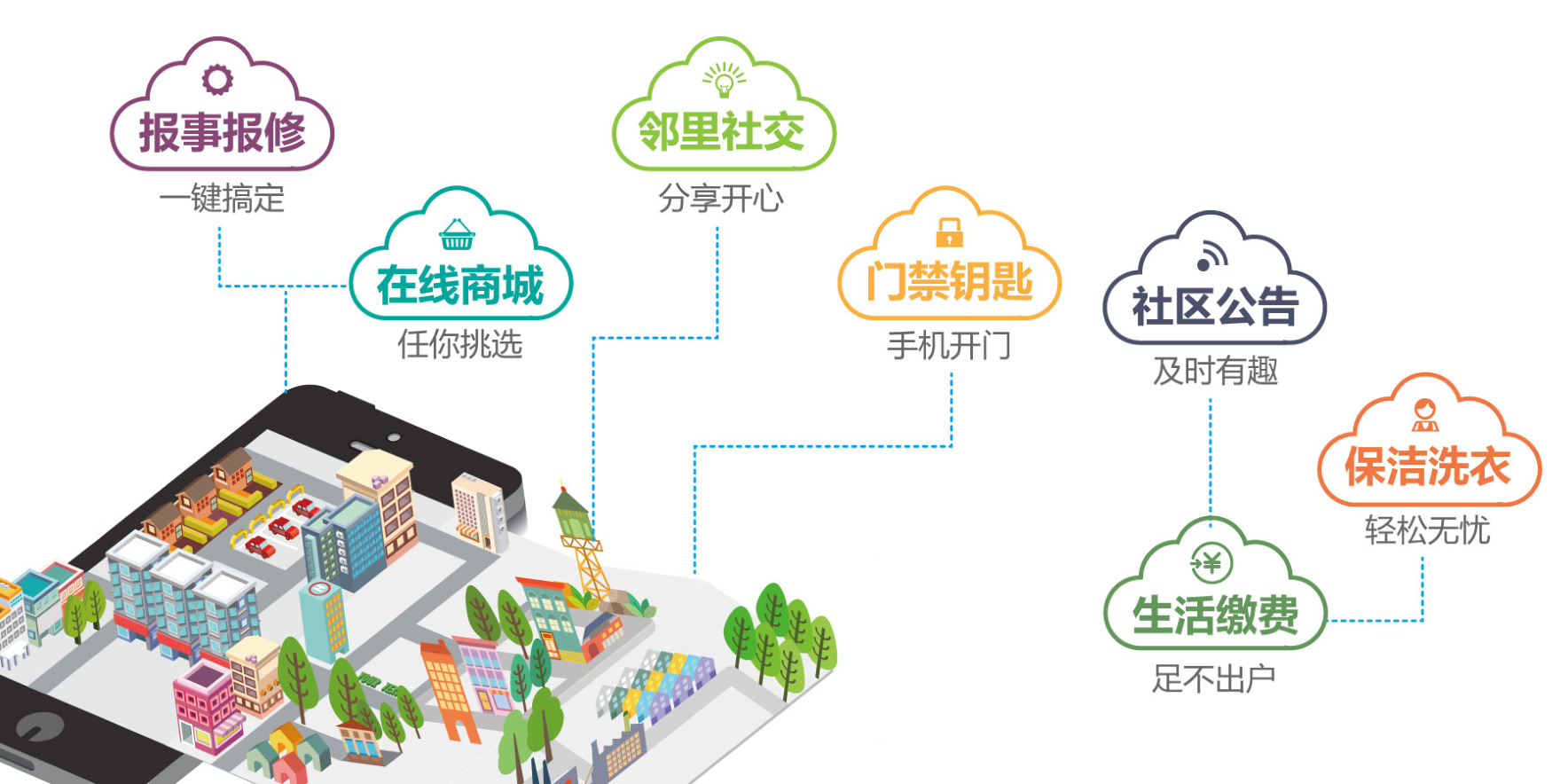 通過“平臺+硬件+運營”的軟硬件相結合理念,涵蓋到社區生活的方方面面,大到社區門禁、社區監控、社區通訊等,小到家居設備、安全警報、居家醫療設備等,均可通過硬件設備將大數據收集傳輸備份至云端數據庫,通過平臺整合分析可在線監控社區安全、接受社區需求、提供